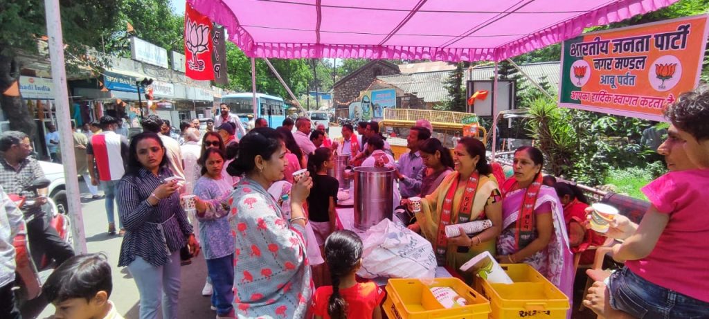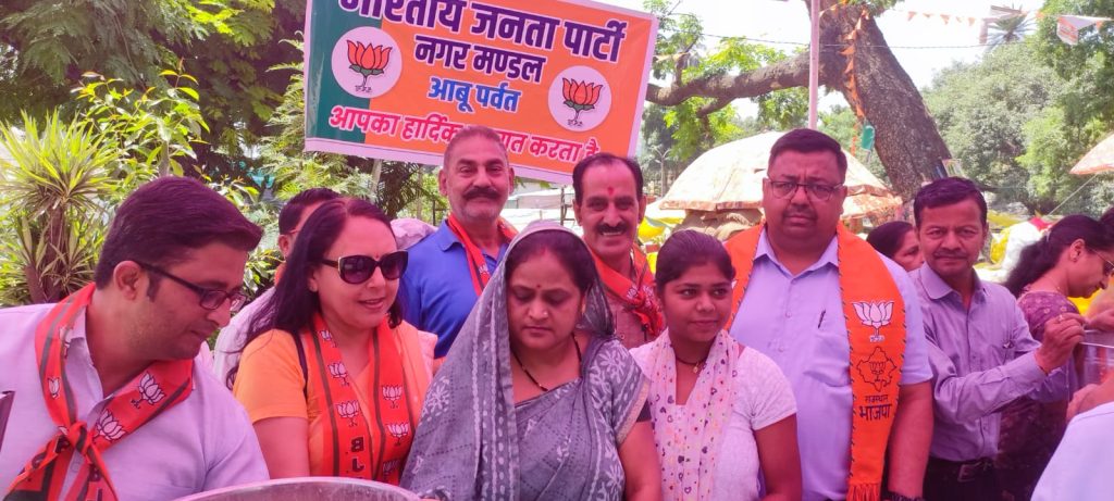 भारतीय जनता पार्टी प्रदेश अध्यक्ष सीपी जोशी जी एवं भाजपा सिरोही जिलाध्यक्ष सुरेश कोठारी के निर्देशानुसार आज भारतीय जनता पार्टी नगर मंडल आबू पर्वत द्वारा मंडल अध्यक्ष प्रदीप अग्रवाल के नेतृत्व में सेवा सप्ताह का शुभारंग करते हुए भाजपा मंडल पदाधिकारी एवं समस्त मोर्चा प्रकोष्ठ के कार्यकर्ताओं व जिला पदाधिकारियों द्वारा शहर के M.K. चौराहा पर भीषण गर्मी होने के कारण शहर में बाहर से पधारे पर्यटकों एवं स्थानीय नागरिकों को शीतल पेय (छाछ) का वितरण किया।