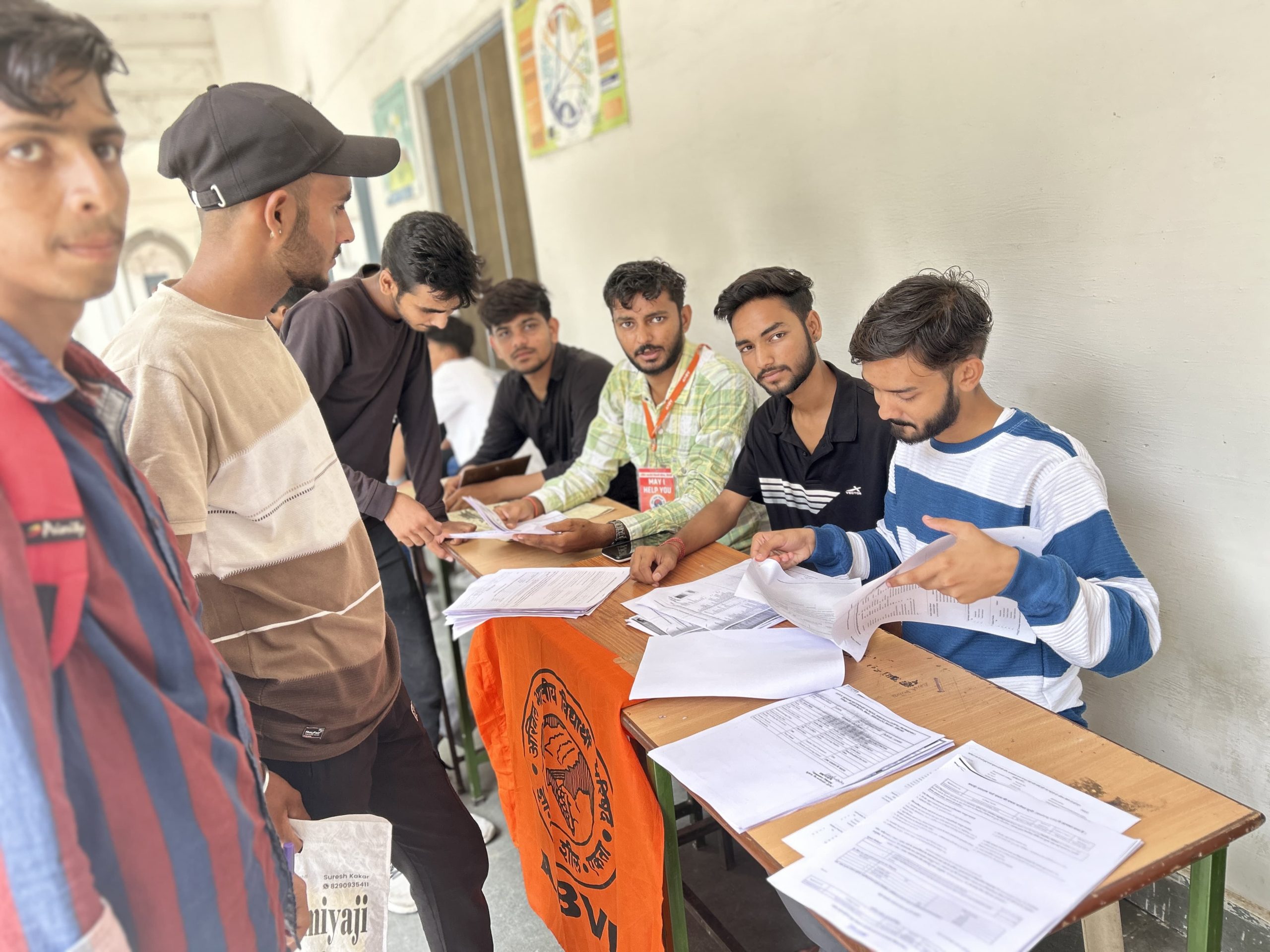 राजकीय पीजी महाविद्यालय सिरोही में बीए बीकॉम बीएससी प्रथम सूची जारी होने के बाद दस्तावेज जमा होने के लिए बुधवार को महाविद्यालय परिषद में छात्र छात्राओ की भीड़ उमड़ पड़ी कॉलेज में काफी दिनों बाद विद्यार्थियों को हलचल देखने को मिली इस बीच अखिल भारतीय विद्यार्थी परिषद ने विद्यार्थी सेवा केंद्र स्थापित कर छात्र छात्राओ की प्रवेश संबंधी आ रही दिक्कतों में मदद की इस दौरान एबीवीपी कार्यकर्ताओं हिम्मत छीपा, नितेश राजपुरोही ,हितेष छीपा, देव राठौड, ललित लखारा,विकास कुमार सहित अन्य लोगो मौजूद रहें ।