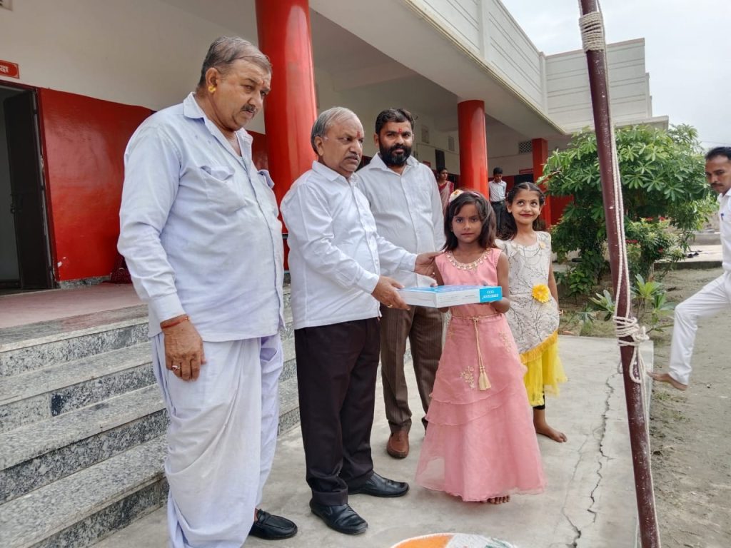 भारजा गांव के सरपंच महोदय श्रीमान पुखराज जी प्रजापत प्रधानाचार्य श्रीमान पंकज कुमार प्रजापत अध्यक्ष श्रीमान सुरेश जी बंसल उपाध्यक्ष श्रीमान मोहन जी कुम्हार कोषाध्यक्ष श्रीमान रुपेश जी प्रजापत सहकोषाध्यक्ष श्रीमान कसनाराम जी देवासी अभिभावक संपर्क प्रमुख श्रीमान प्रभु राम जी देवासी सुरेश भाई बंसल द्वारा कक्षा प्रथम से आठवीं तक प्रथम आए सभी भैया बहनों को घड़ी प्रदान की गई और कक्षा आठवीं में संस्कृत विषय में 100% परीणाम देने वाले आचार्य श्री भरत कुमार सीताराम जी को मेडल से सम्मानित किया गया आचार्य राजेंद्र जी जोगाराम भंवर जी दीपक जी राहुल जी पोपट जी प्रवीण जी भावना संतोष मीना देवी इत्यादि उपस्थित रहे ।