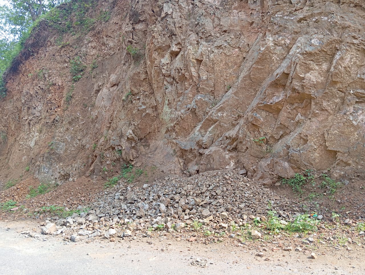 सांगना -उपलागढ़ मुख्य सड़क पर ऊंचाई से गिर रहा है मलबा, पत्थर, और बड़े-बड़े पहाड़ी रोडें