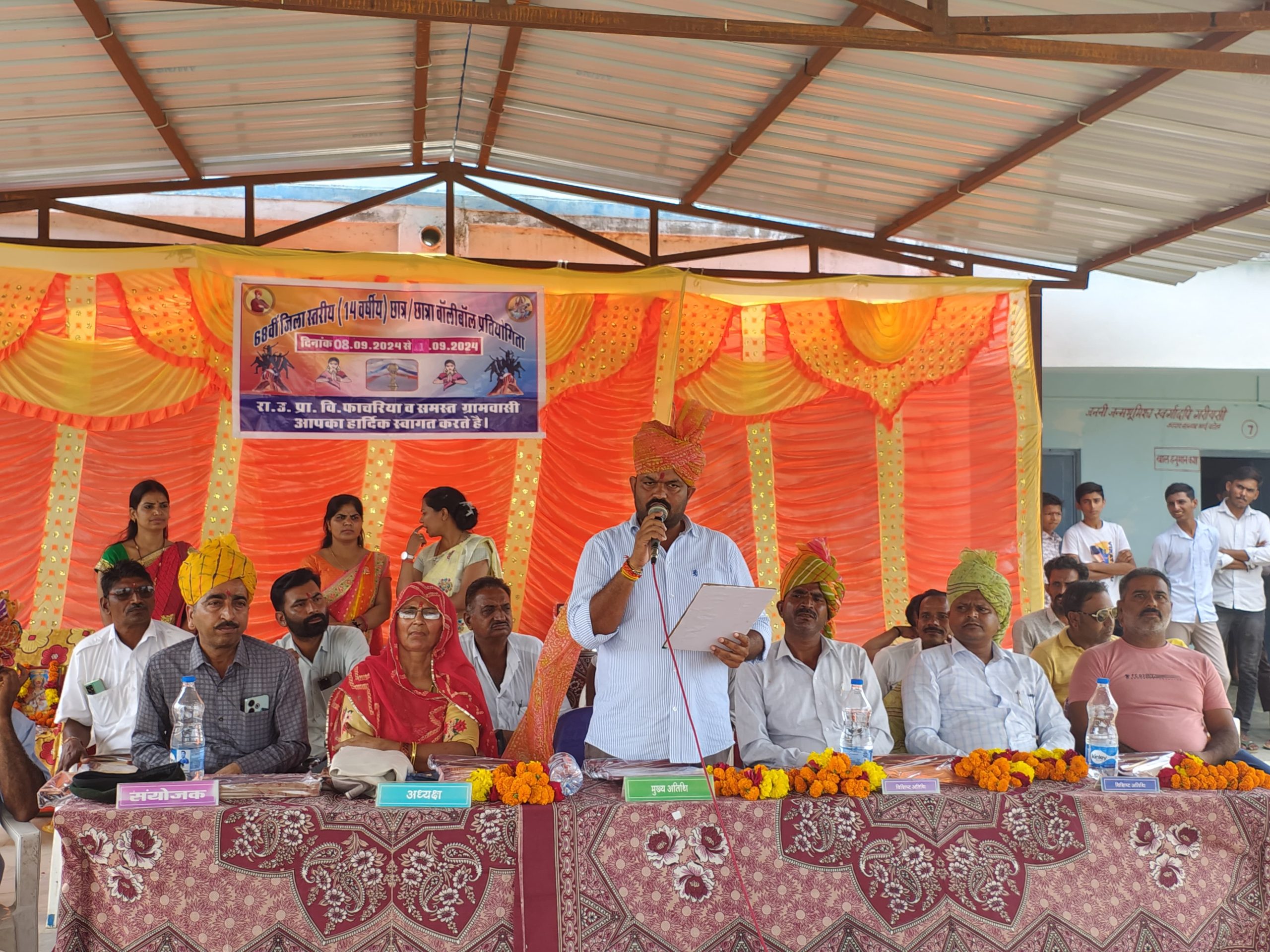 राज्य सरकार द्वारा शिक्षा विभाग के निर्देशानुसार 68वीं छात्र छात्रा वर्ग जिला स्तरीय खेलकूद प्रतियोगिता वॉलीबॉल की राजकीय उच्च प्राथमिक विद्यालय फाचरिया पर मुख्य अतिथि पंचायत समिति सिरोही प्रधान हॅसमुख कुमार चौहान, सरपंच ग्राम पंचायत तवरी हिम्मताराम मेघवाल,पूर्व पंचायत समिति सदस्य पुष्पक कुंवर देवड़ा, शिक्षा विभाग द्वारा पर्यवेक्षक प्रिंसिपल श्रवणकुमार मेघवाल, संत महाराज त्रिकमाराम देवासी, वाइस प्रिंसिपल हिंगलाज दान चारण एवं पीईईओ व संयोजक नरेंद्र सिंह देवड़ा की उपस्थिति में खेलकूद प्रतियोगिता का उद्घाटन किया। सर्वप्रथम अतिथियों का प्रवेश द्वार पर सोमेला द्वारा स्वागत किया गया। मुख्य अतिथि द्वारा निर्णायक, दलनायक, छात्र छात्रा लीडर का परिचय किया गया। अतिथिओ से मां सरस्वती के तस्वीर पर माला, दीप प्रज्ज्वजित किया गया। उसके पश्चात अतिथियों का साफा, माला व स्मृति चिन्ह द्वारा सम्मान किया गया। मुख्य अतिथि प्रधान साहब के उद्बोधन मे कहा कि फाचरिया स्कुल हेतु ओपन जिम के लिए 5 लाख की घोषणा की गई। प्रधान मुख्य अतिथि द्वारा कार्यक्रम की घोषणा की गई। छात्रा पायल कुमारी ने सभी को शपथ दिलवाई गई। संस्था प्रधान बसंती देवी मीणा ने बताया कि इस खेलकूद प्रतियोगिता में कुल टीम 26 ने भाग ली जिसमे 18 टीम छात्र वर्ग और 6 टीम छात्रा वर्ग प्रतियोगिता मे भाग लिया। इस कार्यक्रम में छगनलाल पुरोहित सुरेश कुमार देवासी का माला द्वारा सम्मान किया गया। इस प्रतियोगिता को सफल आयोजन में मनोहर सिंह उदावत व गांव के भामाशाह सहयोग से आयोजन किया जा रहा है।इस प्रतियोगिता में निर्णायक शारीरिक शिक्षक प्रकाश कुमार,गोरखाराम, प्रवीण पटेल,अर्जुन कुमार पटेल,राहुल कुमार, श्रीमती कंचन, गोविंद राम मीणा, हरीश मीणा,हरीश कुमार,सागर चावला की उपस्थिति में खेलकूद का आयोजन किया जा रहा है। मंच संचालन बद्री दान चारण व्याख्याता व हितेश राणा वरिष्ठ अध्यापक ने किया खेलकूद प्रतियोगिता में व्यवस्था के लिए डूंगर सिंह चारण तोलाराम मेघवाल,सोमोती, रामकिशोर मीणा, सतीश कुमार मेघवाल, नेनाराम मेघवाल, हंसराज मीणा बद्रीनाथ चारण व्याख्याता, हितेश राणा वरिष्ठ अध्यापक, शारीरिक शिक्षक जुझार सिंह, राधा प्रजापत, कविता कुमारी मीणा, महेंद्र सांखला, सुनील , कुलदीप कुमार, तेजपाल ने अपनी सेवा दे रहे हैं।