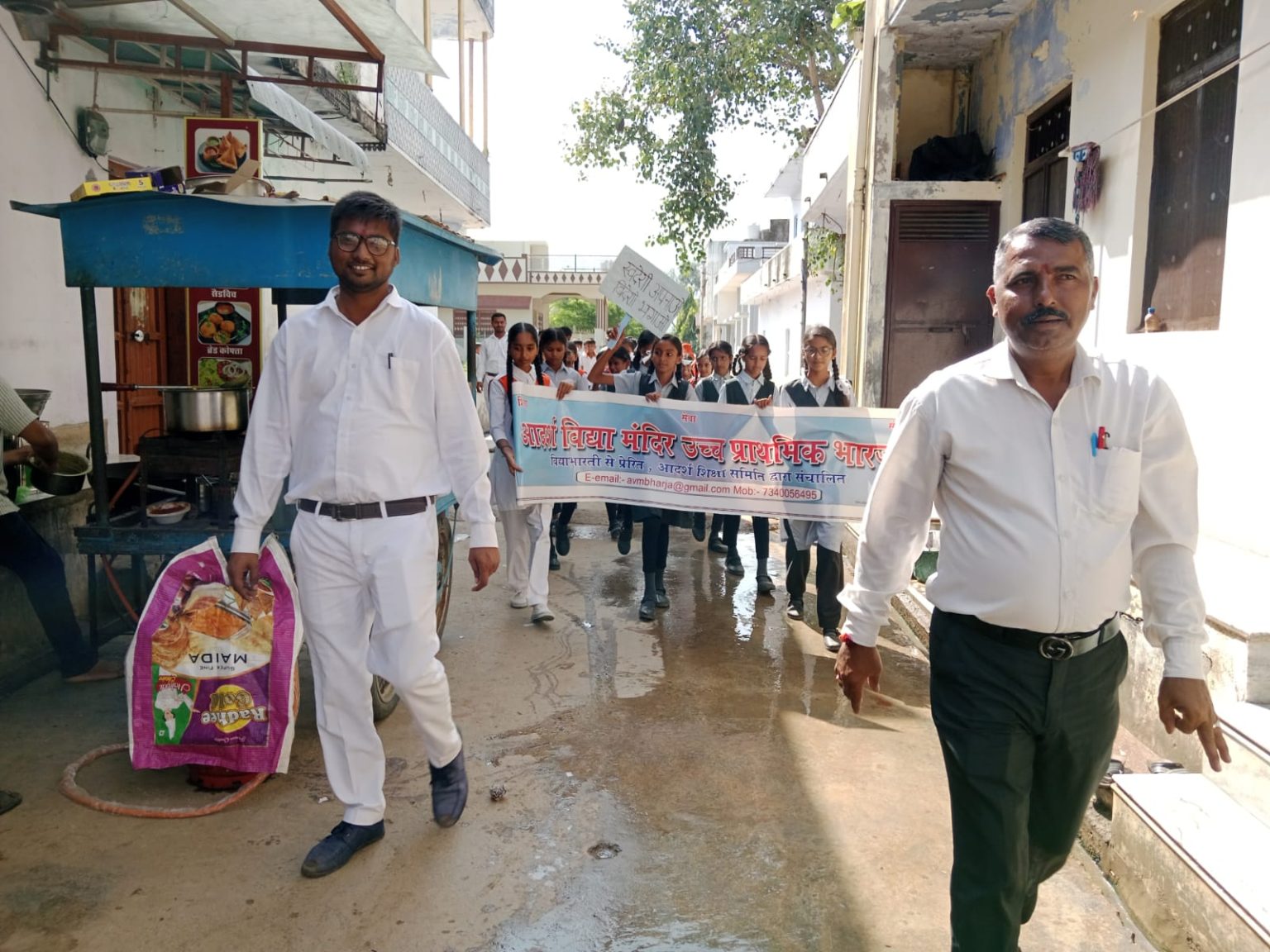 रोहिड़ा के समीपवर्ती गांव भारजा में आदर्श विद्या मंदिर उच्च प्राथमिक विद्यालय भारजा में महात्मा गांधी लाल बहादुर शास्त्री की जयंती मनाई गई इस संपूर्ण कार्यक्रम की जानकारी मीडिया प्रभारी भरत कुमार बामणिया द्वारा दी गई प्रधानाचार्य पंकज कुमार प्रजापत के साधन्य इस कार्यक्रम की शुरुआत हुई मंच संचालन राजेंद्र देवासी द्वारा किया गया प्रवीण जी द्वारा लाल बहादुर शास्त्री की जीवनी के बारे बताया गया और पोपट जी द्वारा महात्मा गांधी के जीवनी के बारे में बताया गया ईशानी प्रजापति गांधी जी की जीवनी संस्कृत भाषा में बताया गया हिमांशु प्रजापत द्वारा अंग्रेजी में गांधीजी की जीवनी बताई गई और मयंक परिहार गांधी जी की जीवनी और उसे पर कविता बोली गई विद्या मंदिर के सभी आचार्य भैया बहन द्वारा स्वदेशी सप्ताह पर रैली निकाली गई सभी आचार्य गण उपस्थित रहे रामलाल देवासी हार्दिक हीरागर प्रवीण कुमार मेघवाल पोपटलाल मेघवाल भंवरलाल घाची राहुल कुमार प्रजापत दीपक कुमार सुथार संतोष सोनी पूजा पुरोहित भावना सेन इत्यादि उपस्थित रहे