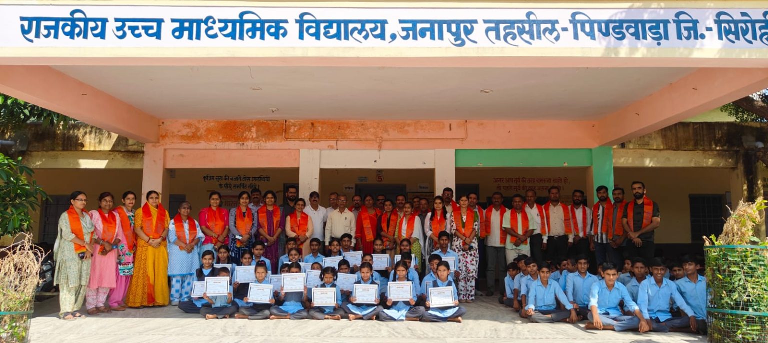 भारत विकास परिषद् शाखा पिण्डवाडा द्वारा राजकीय उच्च माध्यमिक विद्यालय जनापुर व राजकीय बालिका उच्च माध्यमिक विद्यालय जनापुर में गुरुवंदन छात्र अभिनंदन कार्यक्रम आयोजित किया गया ।