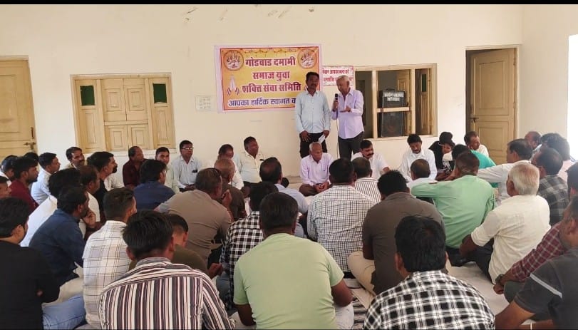 पिंडवाड़ा सरस्वती मंदिर प्रांगण सुमेरपुर में गोंडवाड दमामी समाज युवा शक्ति सेवा समिति की बैठक अध्यक्ष कैलाश गोयल के सानिध्य मे आयोजित हुई, जिसमें समाज के वरिष्ठ व युवाओ ने बढ़चढ़कर भाग लिया,सभा में सचिव प्रवीण चौहान ने संगठन के आगामी कार्य की रूपरेखा के प्रस्ताव रखे,जिसमें समाज ने तन मन धन से सहयोग करने के लिए आश्वासन दिया,व संगठन के कार्य की सराहना की,संगठन के कोषाध्यक्ष हरीश बारोट ने दो वर्ष का आय वय का ब्यौरा समाज के समक्ष प्रस्तुत किया,इस आम सभा में मंदिर में मरम्मत कार्य सभा में भोजन व पानी के लाभार्थियों का तिलक माला साफा से सम्मान किया गया,जल्द से जल्द खेल-कूद प्रतियोगिता करवाने के लिए निर्णय लिया,नवीन कार्यकर्ताओं को जोड़ने, बच्चों के लिए गायन प्रतियोगिता,शिक्षा के क्षेत्र में समाज के बच्चों को आगे बढ़ाने के लिए भी विचार रखे,जिसमें समाज के सभी गणमान्य लोगों ने सहराना की।