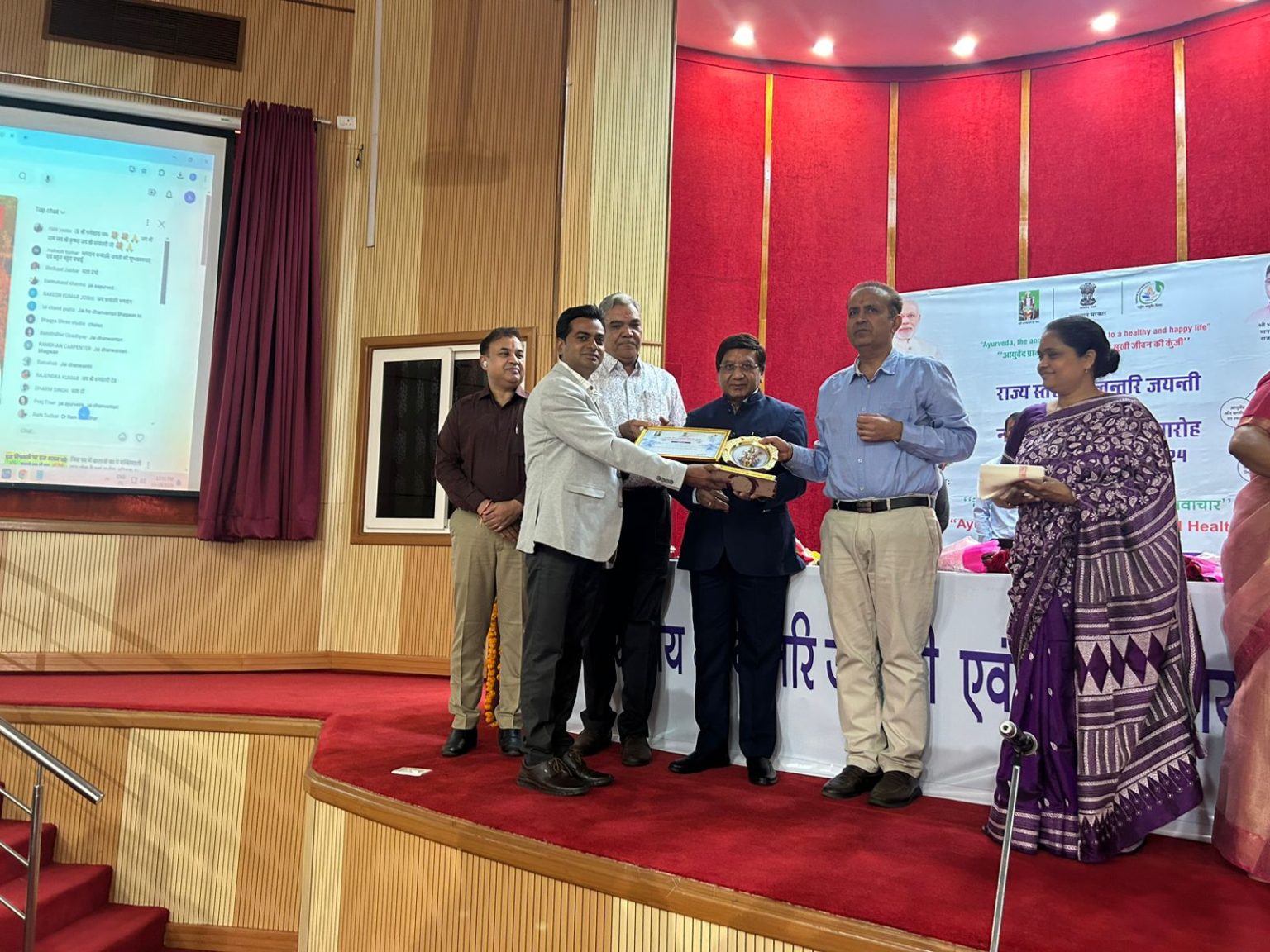 राजकीय आयुर्वेद चिकित्सालय आबू पर्वत प्रभारी डॉक्टर कांतिलाल माली को राजस्थान राज्य सरकार द्वारा श्रेष्ठ कार्य किए जाने पर राज्य स्तरीय धनवंतरी जयंती एवं नवम आयुर्वेद दिवस समारोह दिनांक 29 अक्टूबर 2024 राज्य सरकार राजस्थान जयपुर द्वारा प्रशंसनीय कार्य एवं कुशल कार्य निष्पादन हेतु प्रशस्ति पत्र , स्मृति चिन्ह एवं शाल ओढाकर सम्मानित किया गया