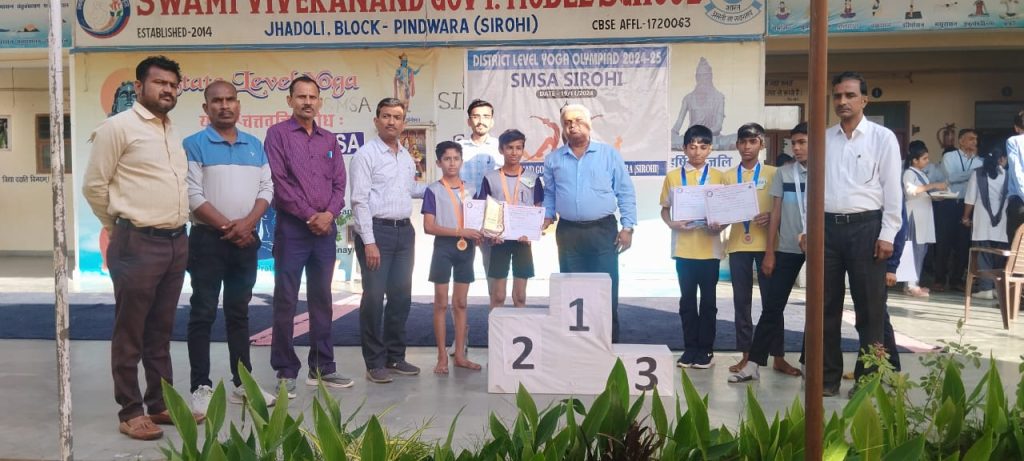 स्थानीय मॉडल स्कूल झाडोली मे जिला स्तरीय योग प्रतियोगिया का सफल आयोजन किया गया.संस्था प्रधान श्याम सुंदर व्यास के अनुसार इस प्रतियोगिता मे कुल 7 विद्यालयों के 38 प्रतिभागी सम्मिलित हुए. निर्णायक मंडल मे व्याख्याता शारीरिक शिक्षण लकमा राम मेघवाल, शारीरिक शिक्षक रंजीत सिंह तथा वरिष्ठ अध्यापक रमेश कुमार ने कुशलतापूर्वक निर्णयन को अंजाम दिया. मंचासीन अतिथियों मे झाडोली सरपंच कैलाश सुथार तथा शिवलाल गेहलोत – विधायक प्रतिनिधि SDMC की उपस्थिति ने प्रतिभागियों को प्रोत्साहन प्रदान किया.प्रतियोगिता के निर्णायक मंडल द्वारा दिये गए रिजल्ट्स के अनुसार जूनियर बॉयज़ प्रथम स्थान MGGS पाडिव, द्वितीय स्थान MGGS बड़गांव तथा तृतीय स्थान Svgms झाडोली ने प्राप्त किया.व्यक्तिगत बॉयज़ श्रेणी मे प्रथम स्थान MGGS पाडिव के प्रवीण द्वितीय स्थान MGGS पाडिव के महिपाल सिंह , MGGS के श्रवण ने तृतीय प्राप्त किया.इसमें प्रवीण और महिपाल सिंह राज्य स्तर पर जूनियर बॉयज वर्ग में अपने जिले का प्रतिनिधित्व करेंगे. इसी तरह जूनियर बालिका श्रेणि मे MGGS अनादरा प्रथम, मॉडल स्कूल झाडोली द्वितीय तथा KGBV जावाल तृतीय रहे.व्यक्तिगत श्रेणि मे MGGS अनादरा की ममता कुमारी प्रथम , MGGS अनादरा की वर्षा कुमारी द्वितीय ,मॉडल झाडोली की निहारिका माली तृतीय रही. इसमें ममता कुमारी व वर्षा कुमारी जूनियर गर्ल्स वर्ग में राज्य स्तर पर अपने जिले का प्रतिनिधित्व करेंगी ।सीनियर बॉयज़ मे मॉडल स्कूल रेवदर प्रथम, मॉडल स्कूल पिंडवाडा तथा तृतीय KGBV जावाल रहे.व्यक्तिगत श्रेणि सीनियर बॉयज़ मे मॉडल स्कूल रेवदर के प्रिंस चुन्नीलाल प्रजापत प्रथम ,मॉडल रेवदर के खेतपाल सिंह द्वितीय व मॉडल झाडोली के दृष्टि कुमावत रहे इसमें प्रिंस व खेतपाल सिंह राज्य स्तर पर सीनियर बॉयज में अपने जिले का प्रतिनिधित्व करेंगे।सीनियर बालिका श्रेणि मे MGGS अनादरा प्रथम, मॉडल स्कूल झाडोली द्वितीय तथा मॉडल रेवदर तृतीय रहे. व्यक्तिगत श्रेणि मे मॉडल स्कूल झाडोली की छात्रा शुभांगी शर्मा प्रथम , MGGS अनादरा की डिंपल कुमारी दिव्तीय ,मॉडल रेवदर की मिस्तु तृतीय रही. इसमें शुभांगी शर्मा व डिंपल कुमारी सीनियर गर्ल्स वर्ग में राज्य स्तर पर अपने जिलें का प्रतिनिधित्व करेंगी प्रतियोगिता के अंत मे ADPC कांतिलाल आर्य तथा कार्यक्रम अधिकारी रतिराम प्रजापत के आतिथ्य मे सभी विजेताओं को पुरस्कार तथा टीम प्रभारियों और अतिथियों को मोमेंटो से सम्मानित कर विदा किया गया.इस अवसर पर समस्त विद्यालय स्टाफ उपस्थित रहा.