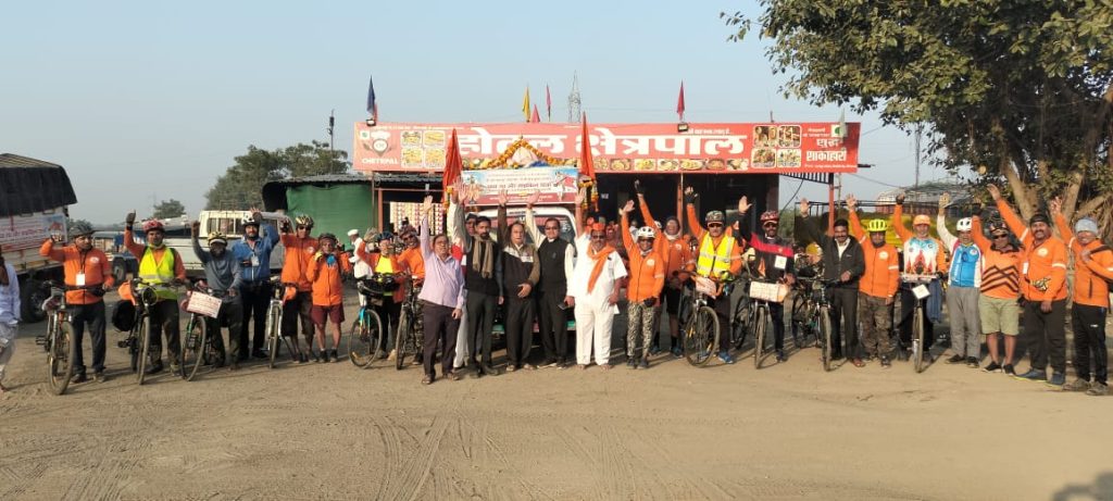 संत शिरोमणी नामदेवजी महाराज की 754 वी जन्म जयंति, संत श्री ज्ञानेश्वर महाराज का 728 वा संजीवन समाधी दिवस,एवं सिख धर्म के स्थापक श्री गुरूनानक साहेब के 555 वे प्रकाश पर्व निमित्त श्री क्षेत्र पंढरपुर महाराष्ट्र से श्री क्षेत्र घुमान पंजाब तक कुल 2300 किलोमीटर की रथ एवं साईकिल यात्रा धर्म शांति समानता एवं भाईचारा जेसे संत विचारो के प्रचार एवं प्रसार हेतु आयोजित की गई है भागवत धर्म प्रचारक सुर्यकान्त भिषे ने बताया की 12 नवंबर कार्तिक शुक्ल एकादशी के दिन यात्रा प्रस्थान की गई थी।कार्तिक शुक्ल एकादशी निमित संत ज्ञानेश्वर महाराज ने भागवत धर्म की नीव रखी और संत तुकाराम महाराज इस धर्म के शिखर बने। संत शिरोमणी श्री नामदेव जी महाराज ने उत्तर भारत मे भागवत धर्म का प्रचार कीया और भागवत धर्म का ध्वज फहराया। जिनके सात्विक विचार पंजाब मे सिखो को प्रभावित करते रहे। धुमान मे संत श्री नामदेव जी महाराज का भव्य दिव्य मंदिर बनवाया। भागवत धर्म प्रचार मंडल,राज्य पालखी सोहला पत्रकार संघ,नामदेव समाजोन्नती परिषद,और समस्त नामदेव शिम्पी समाज श्री विट्ठल की भक्ती एवं शांति समानता और भाईचारा के प्रचार हेतु श्री क्षेत्र पंढरपुर से घुमान साईकिल एवं रथ यात्रा का आयोजन कीया गया है इस यात्रा की शुरुआत 2022 मे की गई थी जिसमे 100 साईकिल यात्री जुडे थे।