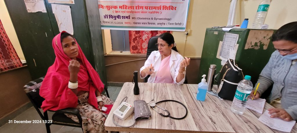 आबू रोड क्षेत्र के सियावा ग्राम पंचायत में नि:शुल्क महिला रोग परामर्श एवं मार्गदर्शन शिविर का आयोजन।