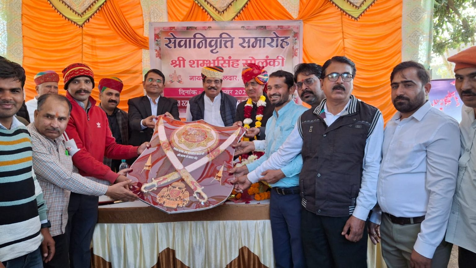 उप तहसीलदार शम्भुसिह सोलंकी को गणमान्य लोगो ने माला साफा पहनाकर सेवानिवृति की दी विदाई।