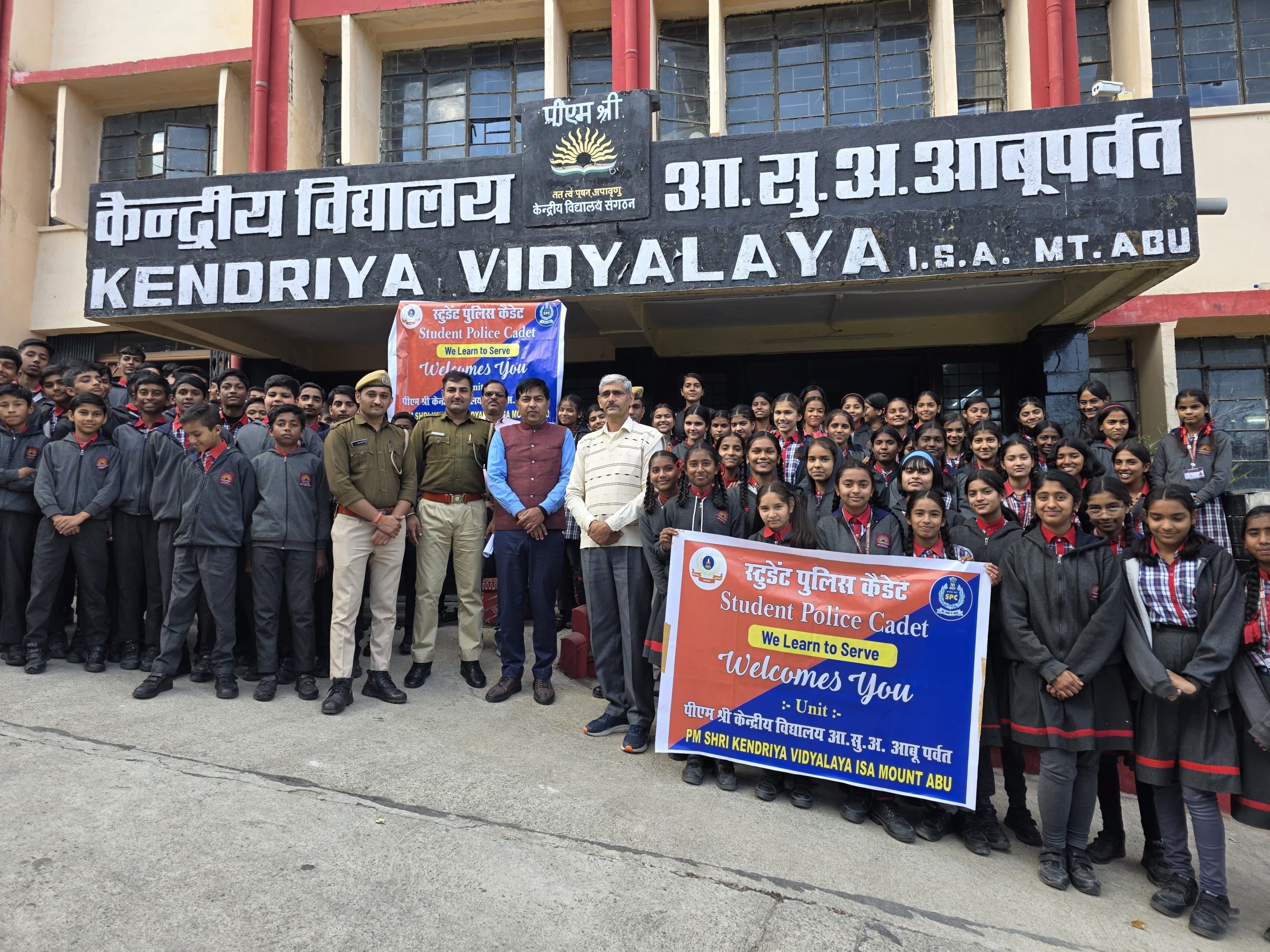 केंद्रीय विद्यालय माउंट आबू में आज सोमवार को स्टूडेंट पुलिस कैडेट कार्यशाला का आयोजन पुलिस थाना आबू पर्वत के मार्गदर्शन में किया गया । स्टूडेंट पुलिस कैडेट योजना का परिचय देते हुए कांस्टेबल सहीराम ने कैडेट से पुलिस के साथ सहयोग करने , सुंदर समाज के निर्माण एवं कैडेट की शंकाओं का निवारण किया । कांस्टेबल जगदीश कुमार द्वारा साइबर क्राइम एवं उससे जुड़ी सावधानियां के बारे में बच्चों को जागरूक किया गया।