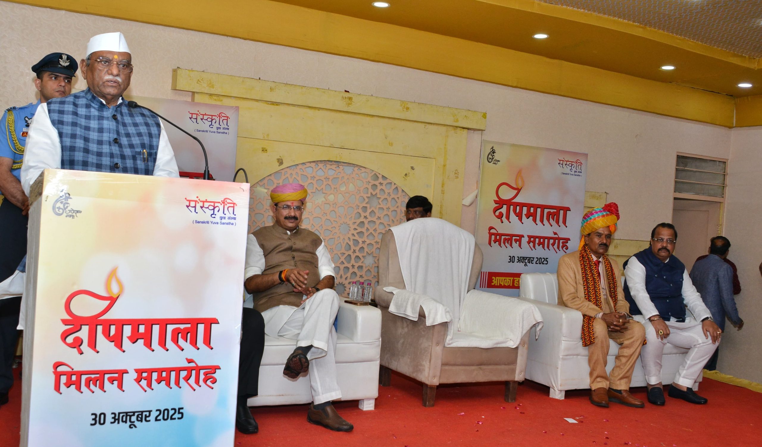 राज्यपाल श्री हरिभाऊ बागडे ने गुरुवार को दीपमाला स्नेह मिलन समारोह में भाग लिया। इस दौरान उन्होंने कहा कि दीपावली वर्ष पर्यंत उत्सवधर्मिता में जीवन जीने का संदेश देने वाला पर्व है। उन्होंने कहा कि एक से एक दीप जलता है तो सर्वत्र प्रकाश का साम्राज्य होता है। स्नेह मिलन समारोह एकता, प्रेम और सद्भाव की हमारी संस्कृति के संवाहक है।