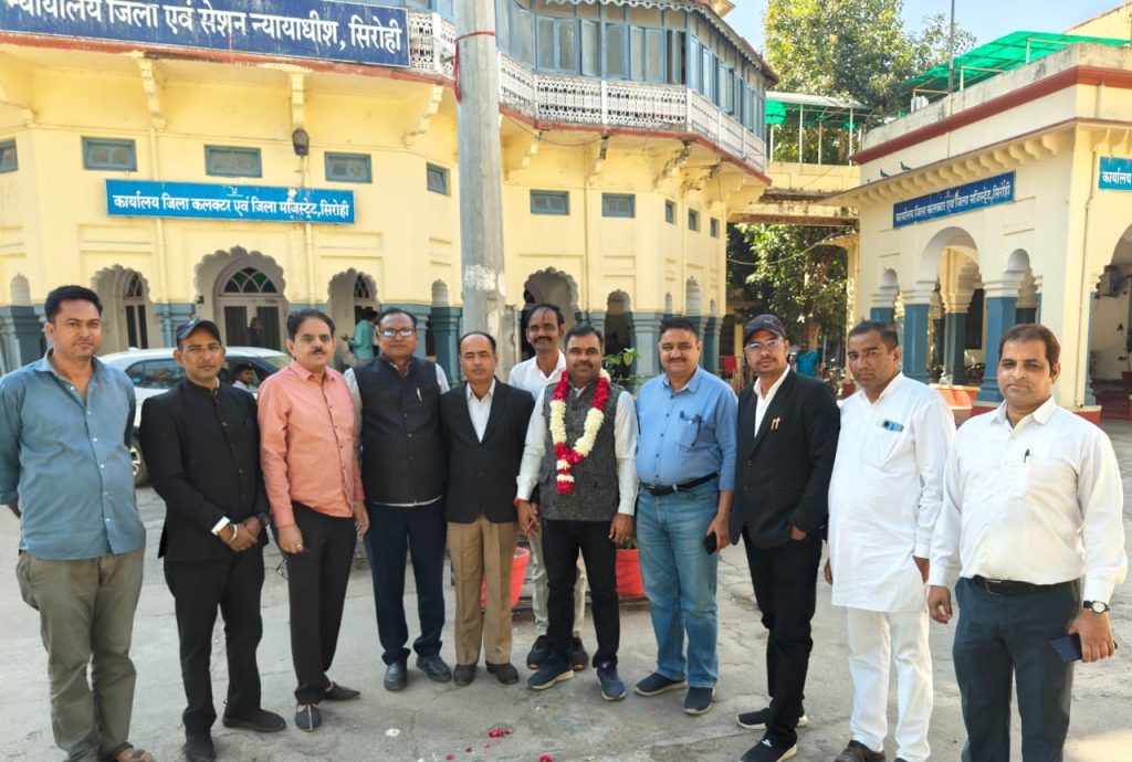 सिरोही जिला मुख्यालय के बार एसोसिएशन के अध्यक्ष पद के उम्मीदवार भंवरसिंह देवड़ा उथमन को निर्विरोध घोषित होने पर समाजसेवी गौभक्त सुरेश पुरोहित पाड़ीव की ओर से जिला मुख्यालय पर माला व तलवार भेटकर सत्कार किया गया। इस अवसर पर एडवोकेट मानसिंह देवड़ा,विक्रमसिंह देवड़ा,आनंद सुमन, गोविंद सैन,हुनरसिंह देवड़ा,पत्रकार राजेंद्र पुरोहित,भगवतसिंह मामावली, प्रदीप कलावंत,हिम्मत पुरोहित, गोविंद सलतरा,आदि गणमान्य मौजूद थे।