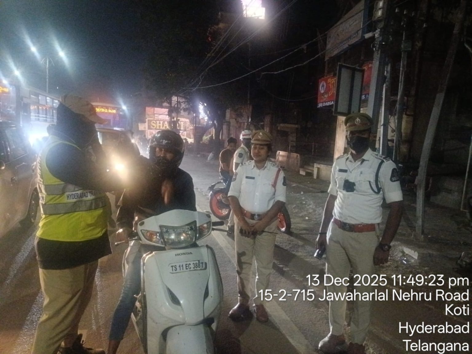 हैदराबाद ट्रैफिक पुलिस नने 12-12-2025 और 13-12-2025 को शराब पीकर वाहन चलाने वालों के खिलाफ दो दिवसीय विशेष अभियान चलाया, जिसमें कुल 460 चालकों को पकड़ा गया। इनमें से 350 दोपहिया वाहन चालक, 25 तीन पहिया वाहन चालक और 85 चार पहिया और अन्य वाहन चालक थे ।