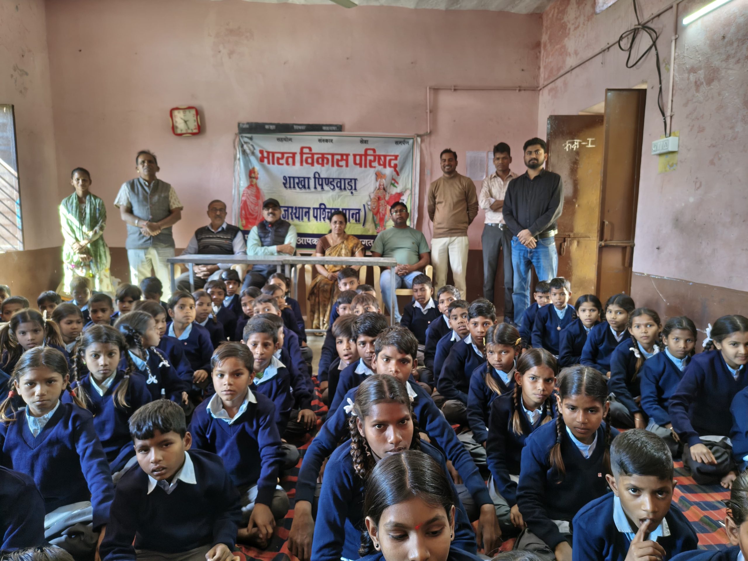 भारत विकास परिषद शाखा पिण्ड्वाडा के संयोजक सेवा गोविन्द सिंह चौधरी ने बताया कि भारत विकास परिषद् शाखा पिण्डवाडा द्वारा सामाजिक सरोकार के विभिन्न कार्य गत कई दशकों से किए जा रहे हैं जिसके तहत आदिवासी क्षेत्र के राजकीय विद्यालयों के वंचित विद्यार्थियों को प्रति वर्ष गर्म स्वेटर वितरण किया जाना भी शामिल है। इसी क्रम में अर्पण अभियान के अंतर्गत आज राजकीय प्राथमिक विद्यालय वेराफली (पंचदेवल) के 41, राजकीय प्राथमिक विद्यालय डामरफली (पंचदेवल) के 40, राजकीय प्राथमिक विद्यालय डूबानाडी (भीमाना) के 30, राजकीय प्राथमिक विद्यालय पावटियाफली (नागपुरा) के 18, राजकीय उच्च माध्यमिक विद्यालय नागपुरा के 89, राजकीय प्राथमिक विद्यालय भील कॉलोनी (तेलपुर) के 34, राजकीय प्राथमिक विद्यालय घाटीफली (तेलपुर) के 63 कुल 315 विधार्थियो को ऊनी वस्त्र (स्वेटर) वितरित किये गये. इस प्रकार परिषद् शाखा पिंडवाड़ा द्वारा इस वर्ष अब तक कुल 867 स्वेटर वितरित किए जा चुके हैं।