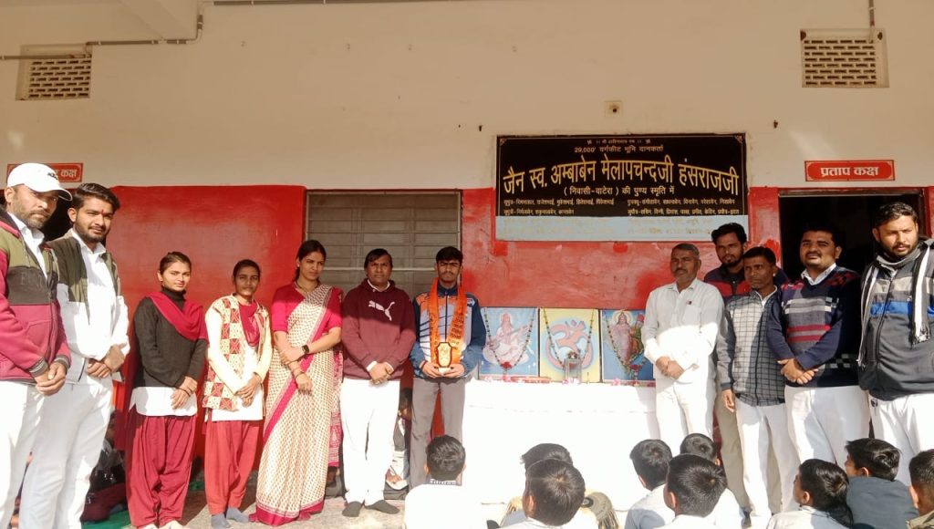 दुर्गेश भाई को युवाओं के लिए प्रेरणास्रोत बताते हुए कहा कि उनकी उपलब्धि यह सिद्ध करती है कि सच्ची मेहनत और संकल्प से हर लक्ष्य प्राप्त किया जा सकता है। समारोह के अंत में विद्यालय परिवार ने उनके उज्ज्वल भविष्य की कामना की और देश के लिए इसी तरह उत्कृष्ट प्रदर्शन करते रहने का संदेश दिया। इस अवसर पर सभी आचार्य गण पोपट लाल राहुल परिहार जोगाराम जोगसन मुकेश कुमार रोहिन उत्तम सिंह सुरेश देवासी भावना दीदी पूजा दीदी इत्यादि उपस्थित रहे