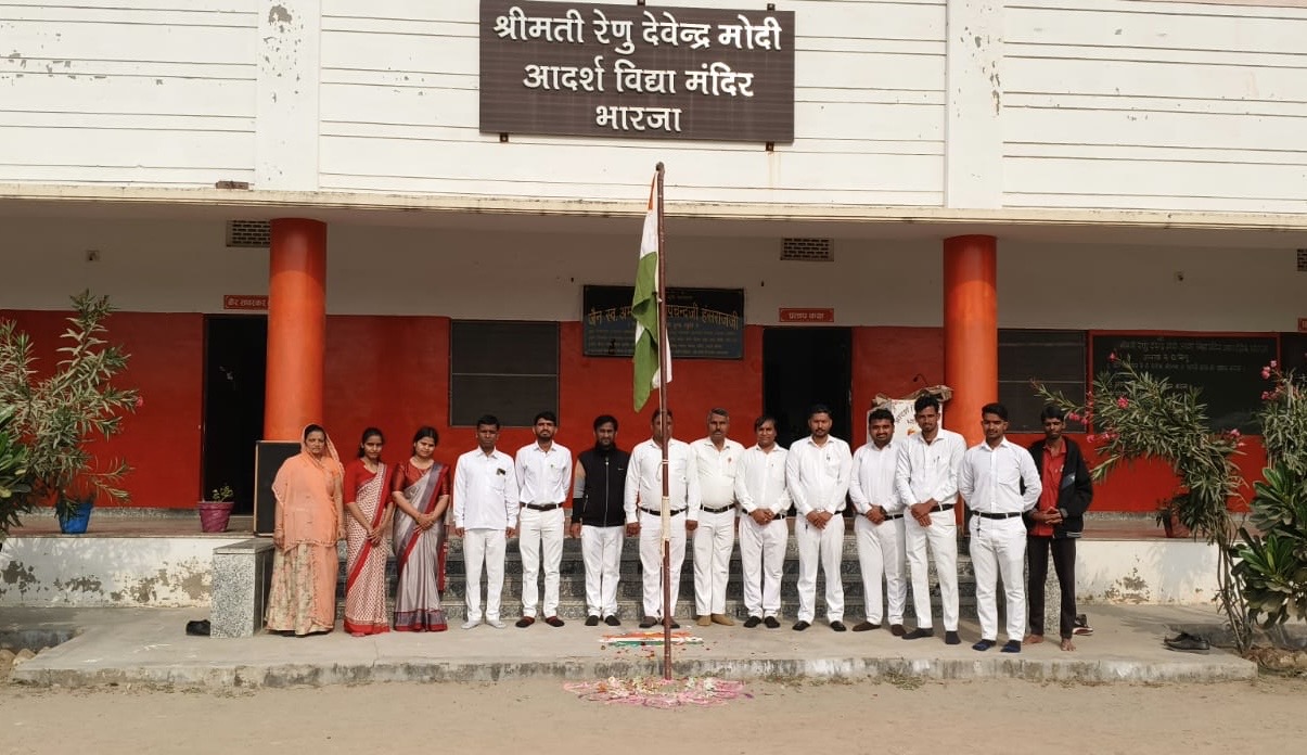 श्री मति रेणु देवेंद्र मोदी आदर्श विद्या मंदिर माध्यमिक भारजा में 77वें गणतंत्र दिवस का आयोजन अत्यंत गरिमामय एवं उल्लासपूर्ण वातावरण में संपन्न हुआ। कार्यक्रम का शुभारंभ प्रधानाचार्य श्री पंकज कुमार प्रजापत द्वारा ध्वज फहराया गया। इसके पश्चात राष्ट्रगान गाया गया, जिससे सम्पूर्ण परिसर देशभक्ति के भाव से गूंज उठा।